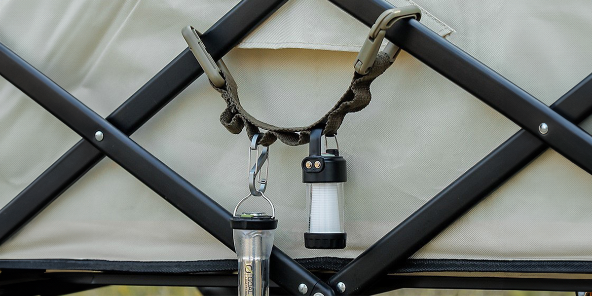 ループ付きのベルトロープで、カラビナやS字フックなどを使ってコップや電池ランタン、洋服などを吊るせる便利アイテムです。